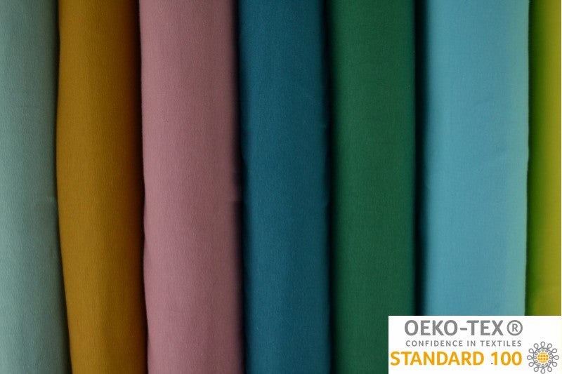 Vores bomuldsjersey som du ser her er Oeko-Tex certificeret. Dette betyder at du som forbruger kan sikre dig, at produktet ikke indeholder stoffer som er skadelige for dig eller for miljøet.