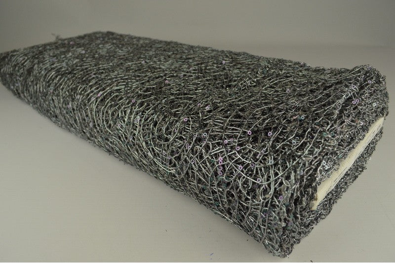 - Flot grovmasket netstof dekoreret med påsyede pailletter. Pailletterne har en diameter på 2-3 mm.