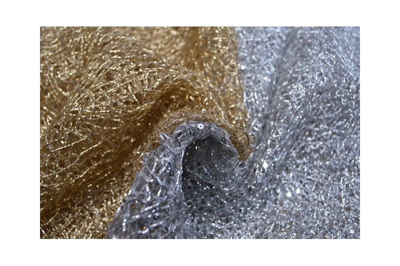 Let og fint netstof med pailletter. Dette pailletstof er perfekt at kombinere med andre metervarer, som f.eks. en flot og festlig detalje til kjoler, nederdele eller bluser. Stoffet kan også bruges til dekoration, som festlige duge eller andet bordpynt.
