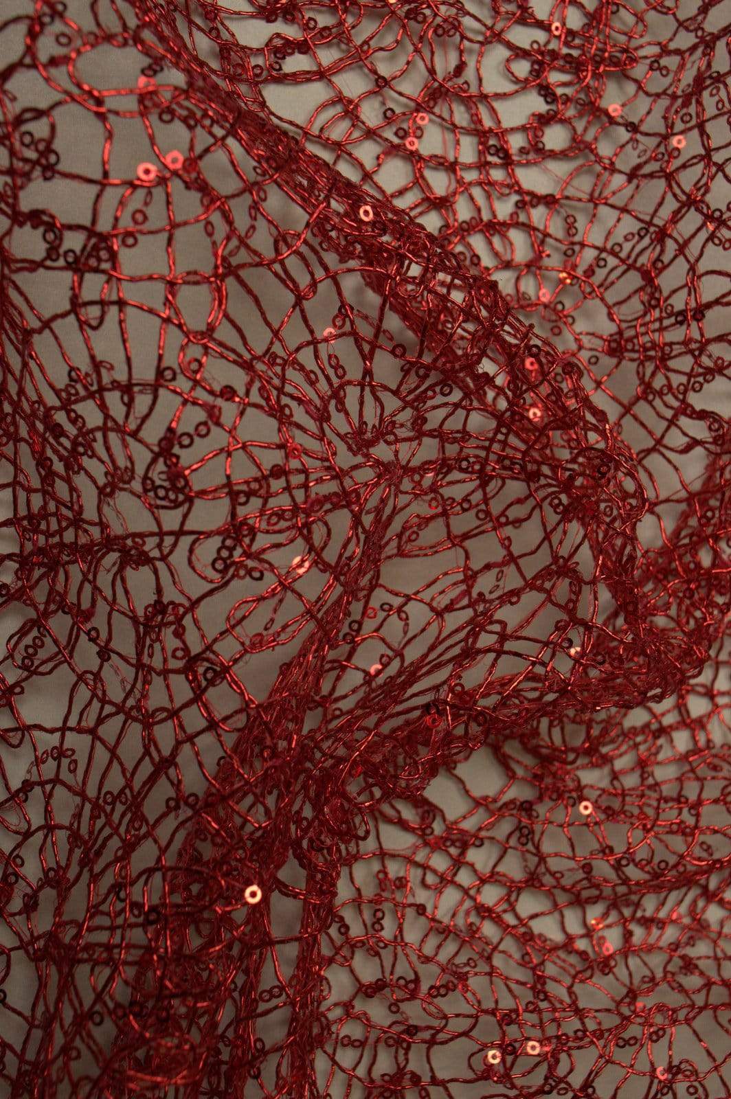 RØD NET PAILLETSTOF – SMÅ 2–3 MM PAILLETTER, UDEN STRÆK