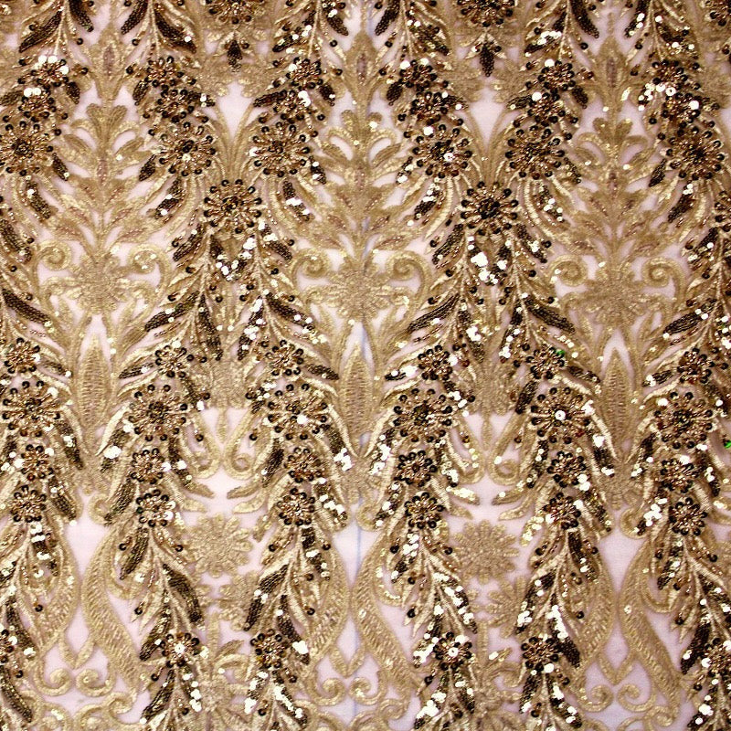 CHAMPAGNEFARVET TYL STOF MED PAILLETTER OG PERLER