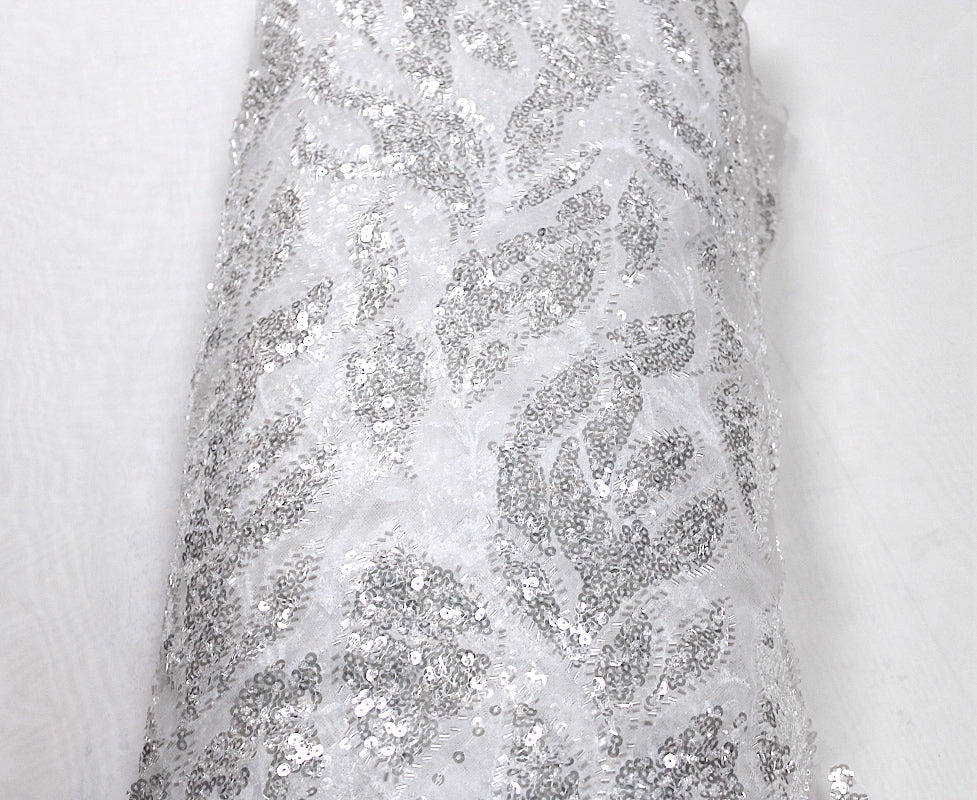HVIDT TYL STOF MED PAILLETTER OG PERLER