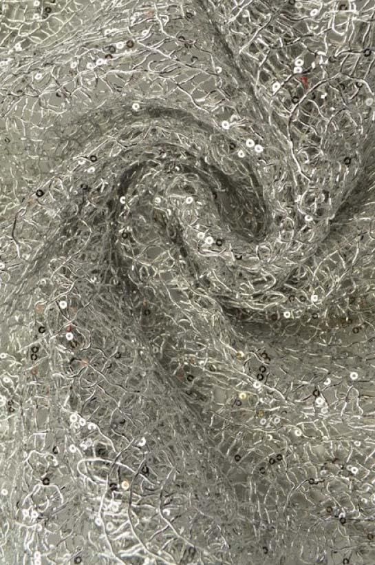 SØLV NET PAILLETSTOF – SMÅ 2–3 MM PAILLETTER, UDEN STRÆK